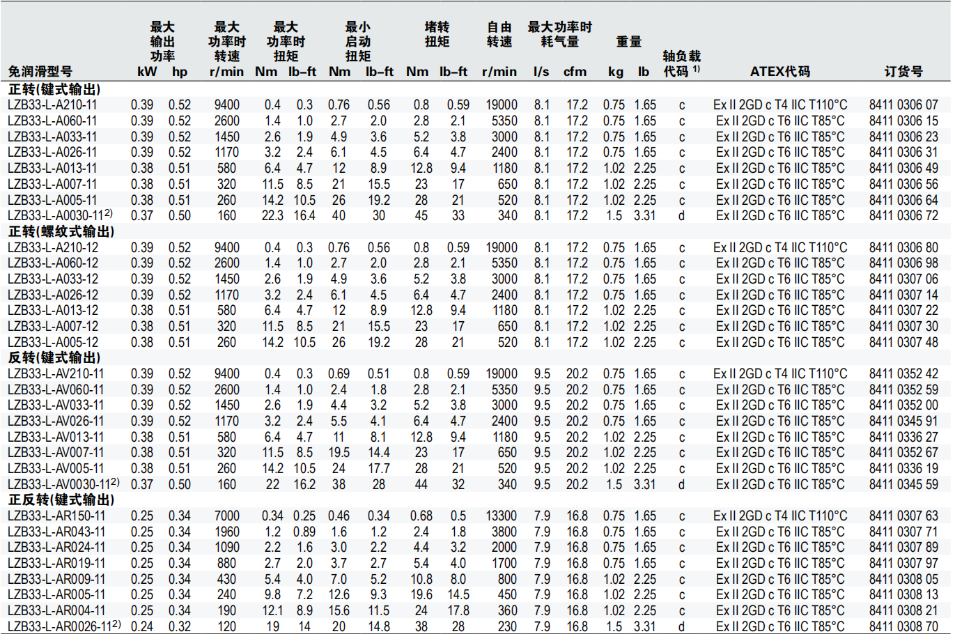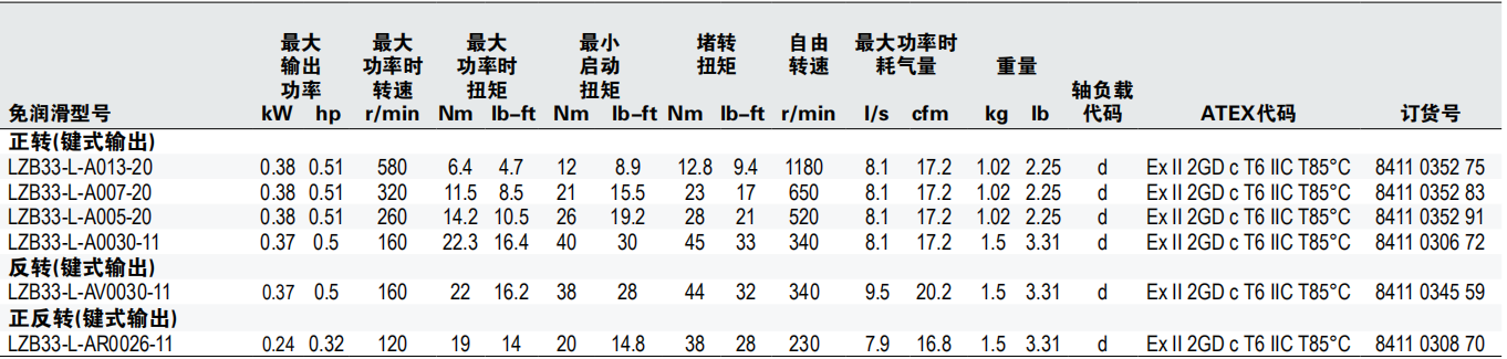 ATLAS COPCO LZB33-L系列免润滑气动马达