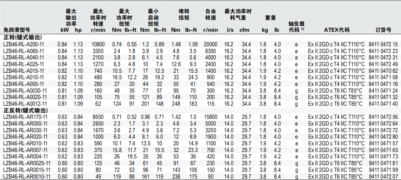 ATLAS COPCO 叶片马达 LZB46-RL系列不锈钢系列免润滑气动马达